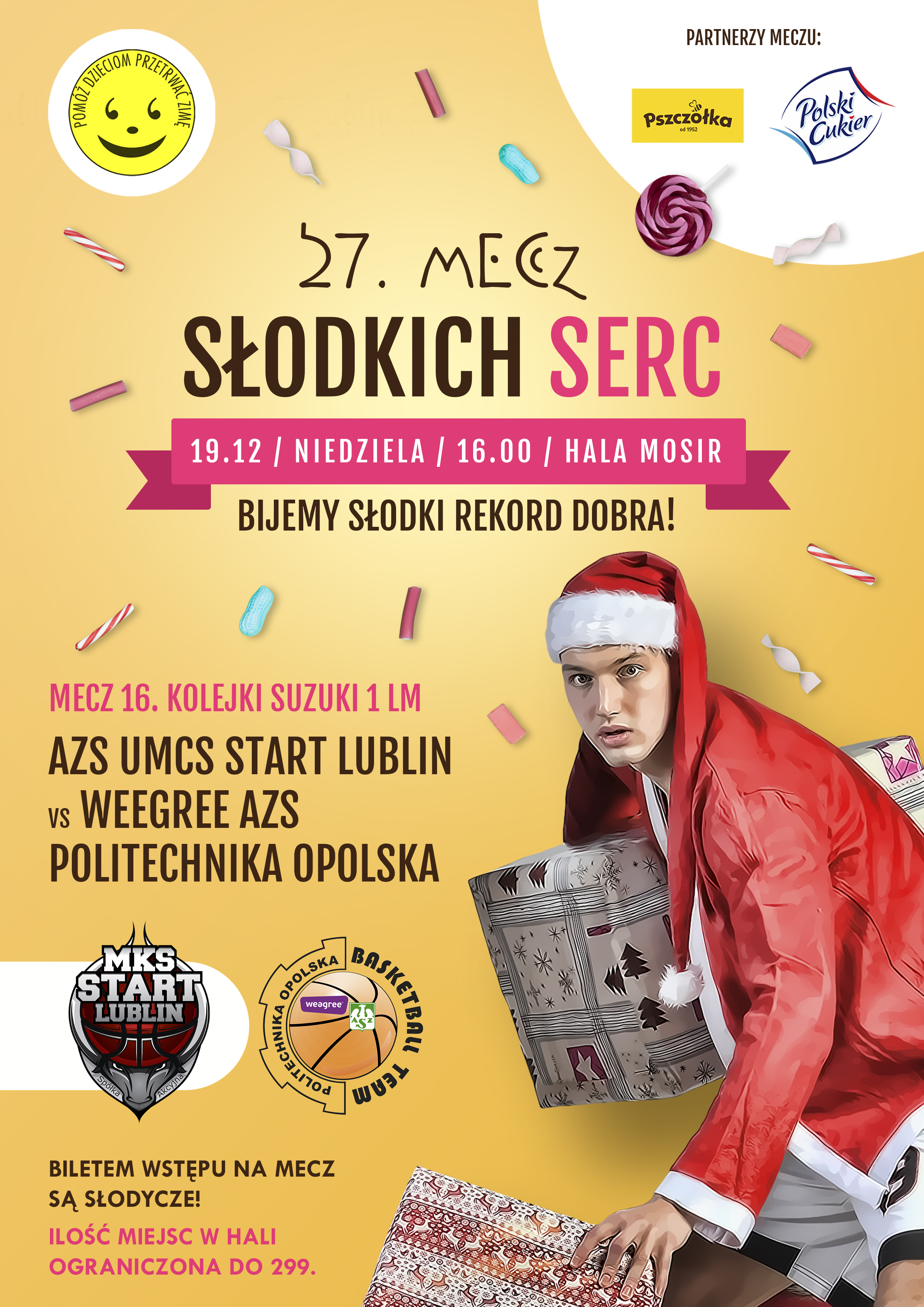 - Cieszę się, że po roku przerwy wynikającej z pandemii koronawirusa, ponownie w Lublinie zostanie rozegrany „Mecz Słodkich Serc”. To szlachetna akcja, a my jako Polski Związek Koszykówki jak zwykle chętnie pomagamy. Mam nadzieję, że dzięki naszej wspólnej inicjatywie najmłodsi podopieczni Domów Dziecka w Lublinie będą mieli słodsze Święta Bożego Narodzenia i uda się pobić kolejny rekord - powiedział Radosław Piesiewicz, prezes Polskiego Związku Koszykówki i Polskiej Ligi Koszykówki.