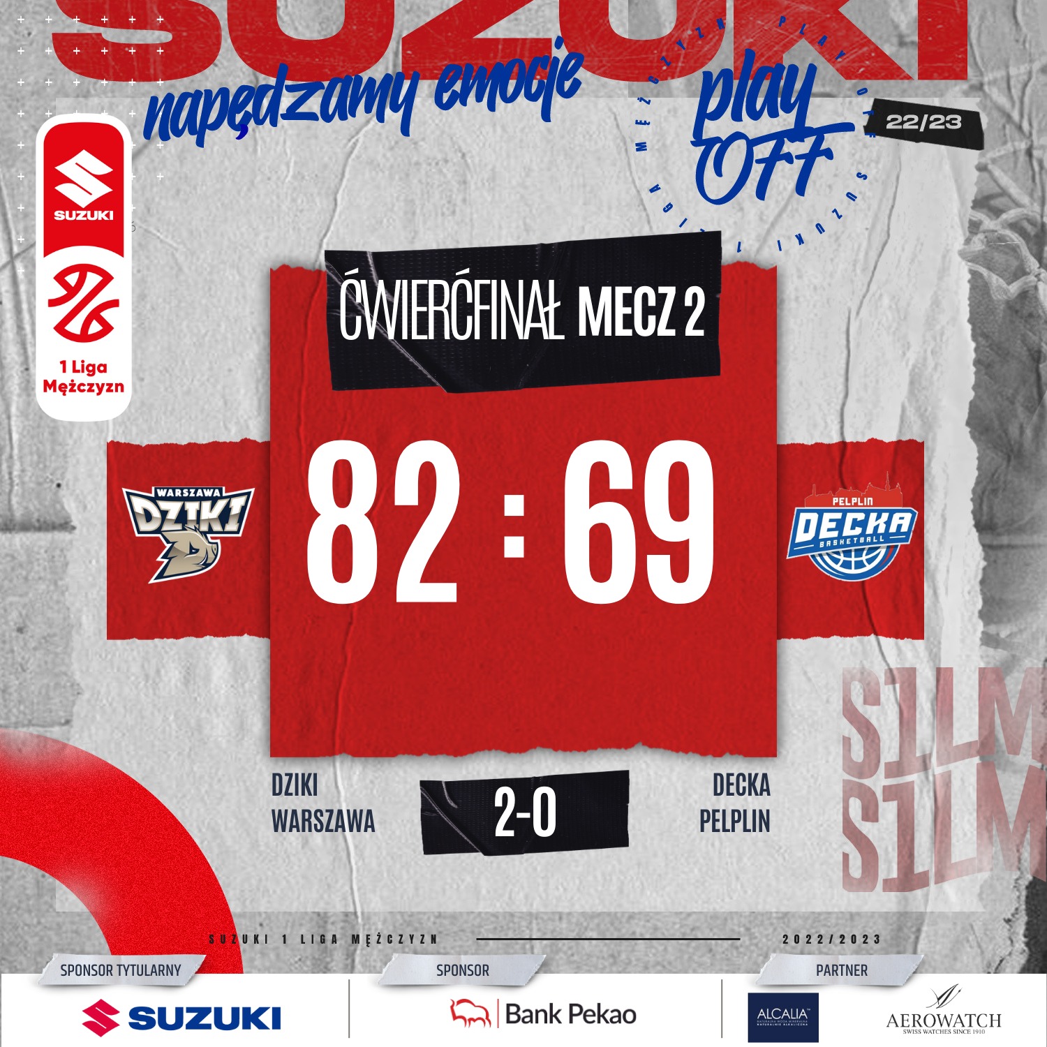 Stan rywalizacji 2-0 dla Dzików Warszawa. Następne spotkanie tej pary w sobotę 22 kwietnia o godzinie 16:00 w Pelplinie.