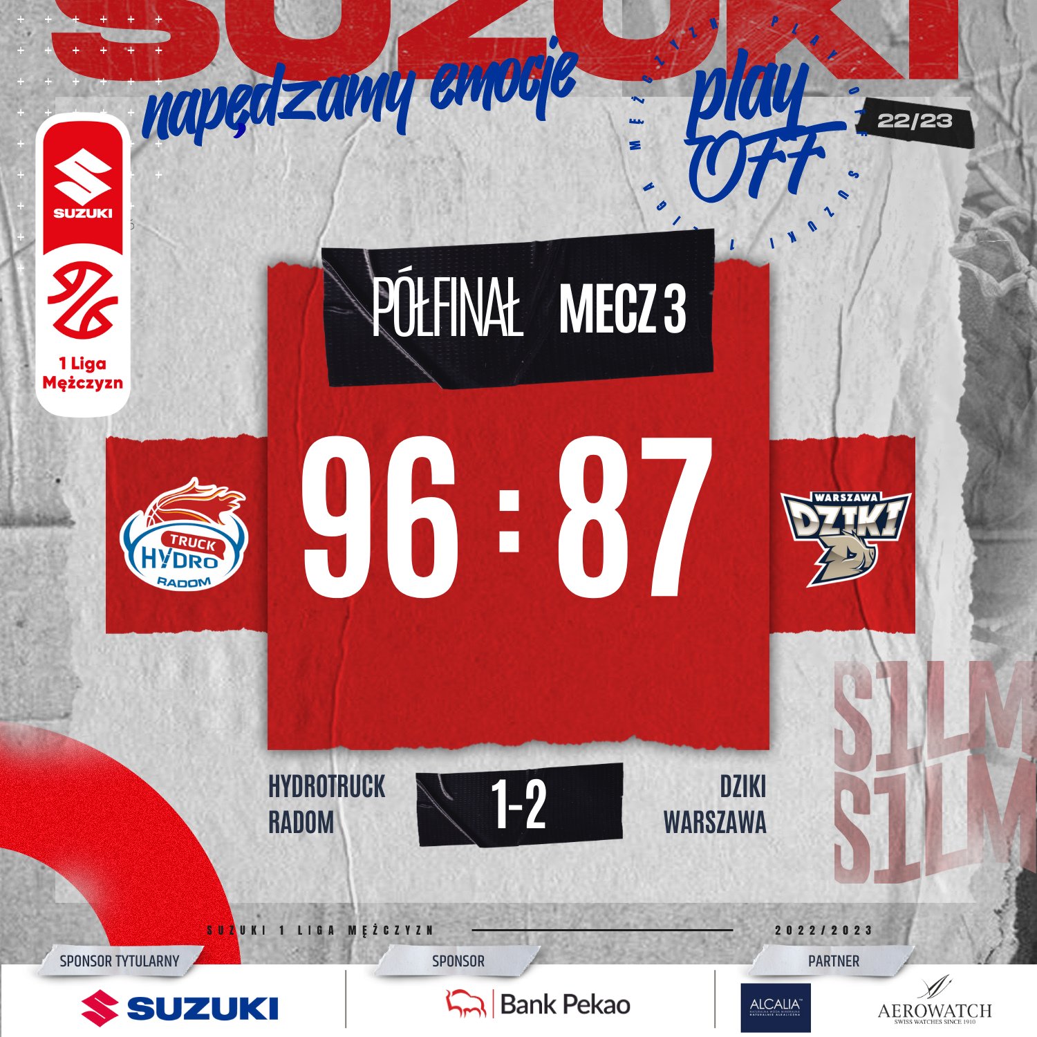 To jeszcze nie koniec półfinałowej rywalizacji w starciu Dzików Warszawa z HydroTruckiem Radom. Skuteczna gra Kaheema Ransoma i Filipa Zegzuły poprowadziła podopiecznych Roberta Witki do zwycięstwa w Radomiu 96:87. W rywalizacji do trzech wygranych 2:1 prowadzą jednak Dziki. Czwarte spotkanie tych drużyn w niedzielę o godzinie 19 w Radomiu.