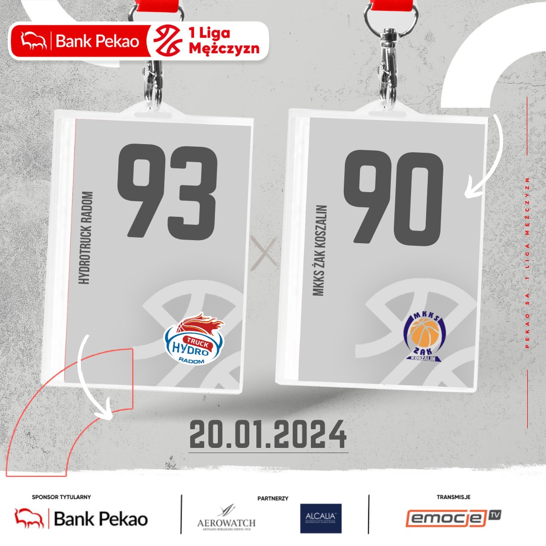 HydroTruck Radom na koniec pierwszej połowy przegrywał z MKKS Żak różnicą 19 punktów, ale po wygranej aż 27:8 trzeciej kwarcie zdołał doprowadzić do remisu i później utrzymać uzyskaną w czwartej odsłonie przewagę. Najlepsze spotkanie w sezonie rozegrał Barosz Ciechociński, który rzucił 29 punktów, nie pudłując ani jednego rzutu z gry (9 na 9). Dodatkowo miał 5 zbiórek i 2 przechwyty.