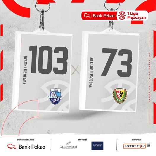 Bez wygranej w lidze pozostają WKS Śląsk II oraz MKKS Żak. Wrocławianie już do przerwy przegrywali w Poznaniu różnicą 30 punktów i po zmianie stron obie drużyny głównie oczekiwały na końcową syrenę, ponieważ przewaga miejscowych była nie zagrożona. 19 punktów Kacpra Mąkowskiego, o jeden mniej uzyskał obchodzący 30. urodziny Mikołaj Stopierzyński, który dodatkowo miał 8 zbiórek.