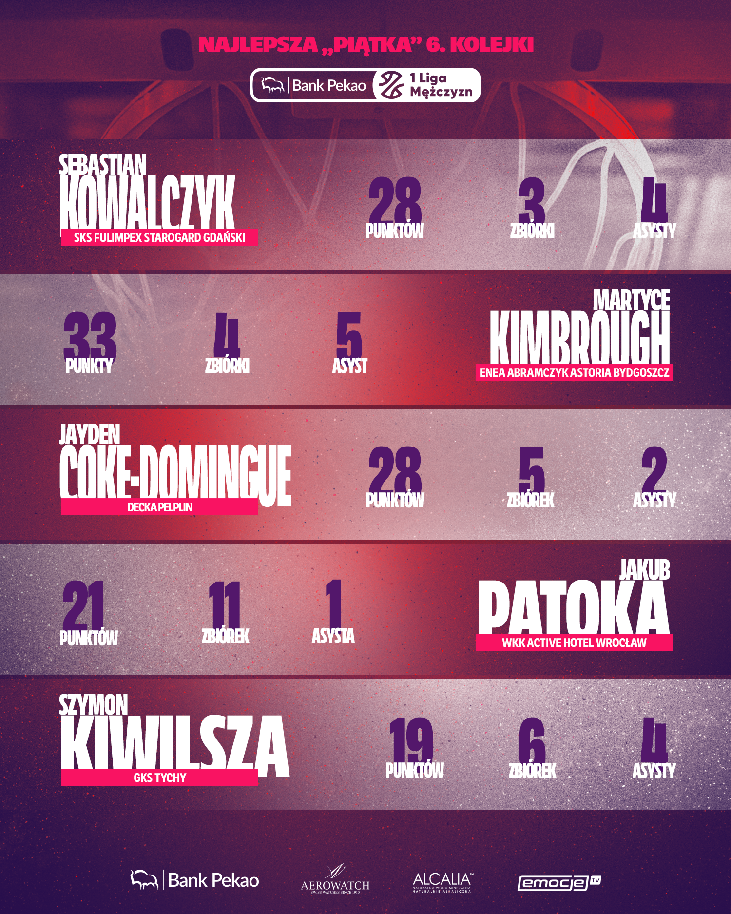 28 punktów, 3 zbiórki i 4 asysty w zwycięskim meczu z Novimex Polonią 1912 Leszno