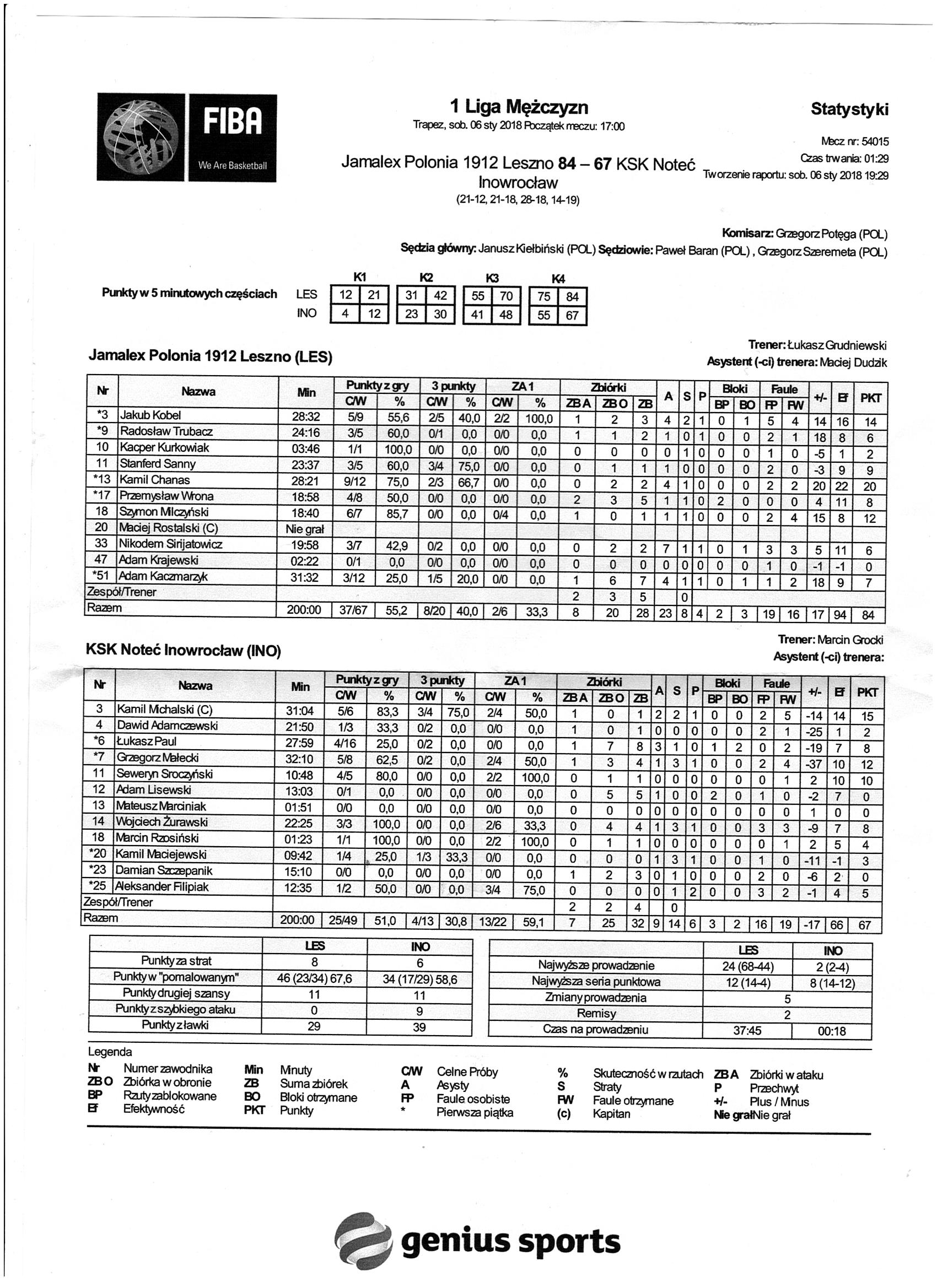 14 Wojciech Żurawski 8 22:253/3 100.0   3/3 100.02/6 33.3  4 4 1 3 3 3 1     7 -9