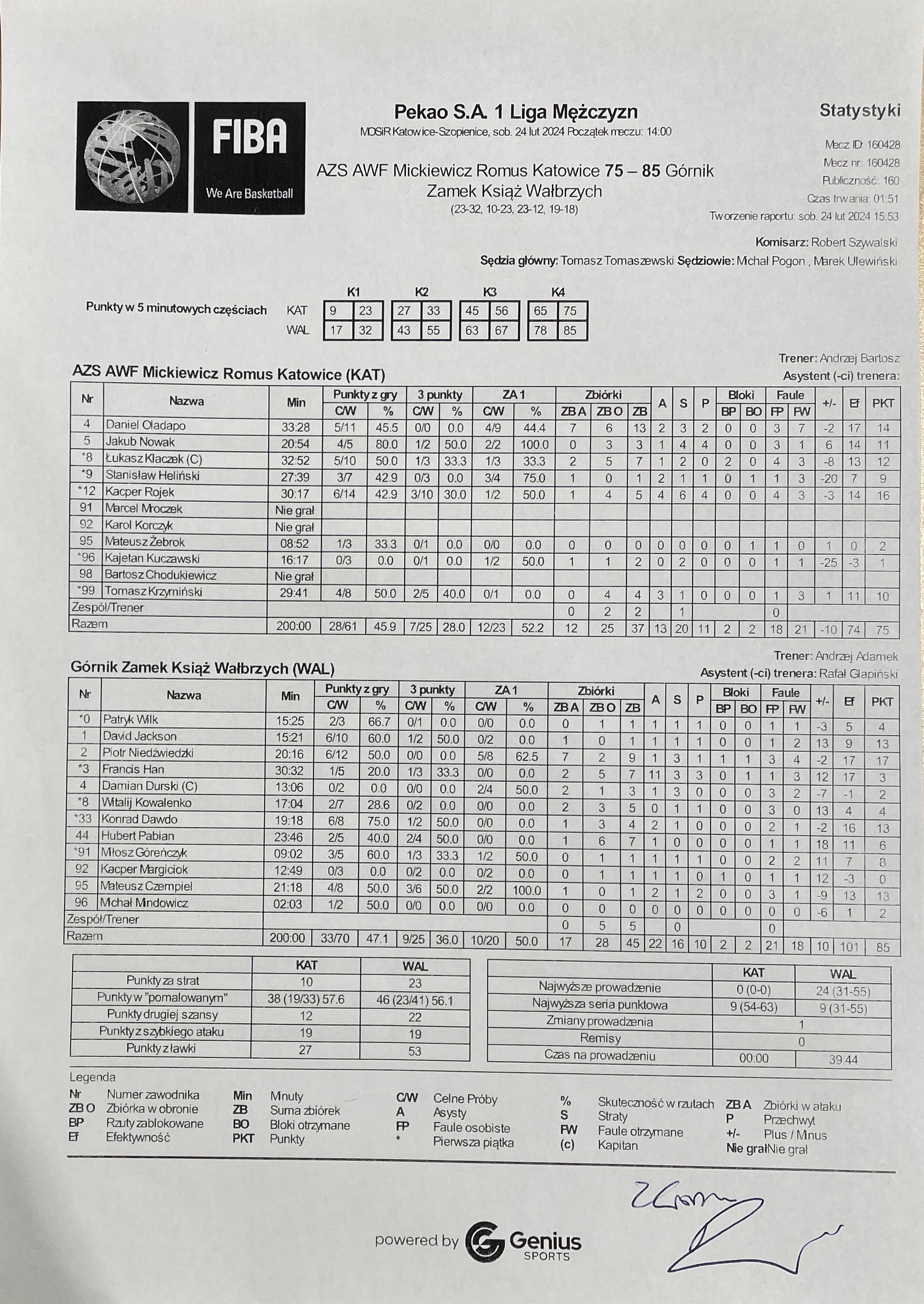 Sędziowie: Tomasz Tomaszewski, Michał Pogon, Marek Ulewiński | Komisarz: Robert Szywalski