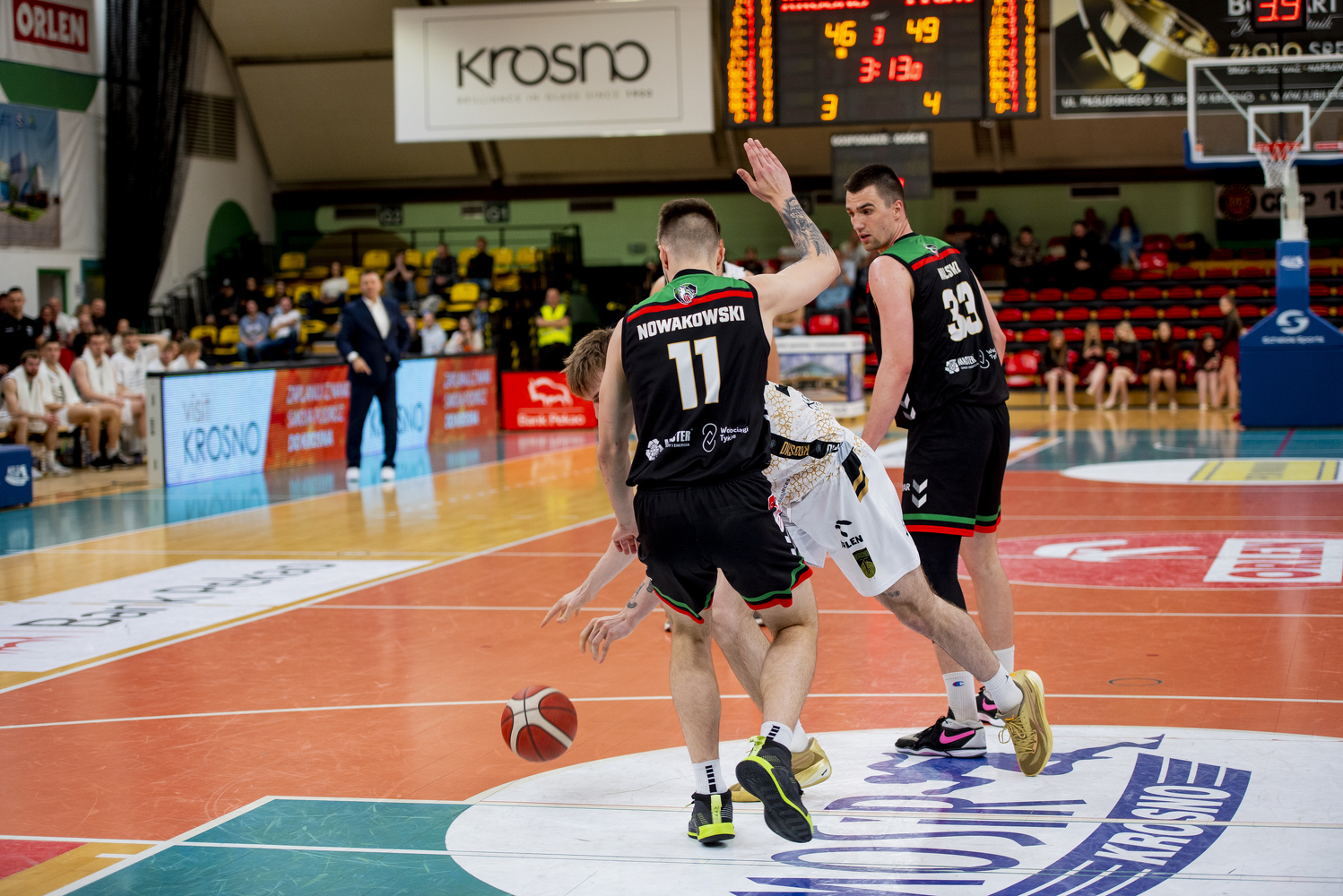 11, K. Nowakowski, niecelny z wyskoku za 2 |