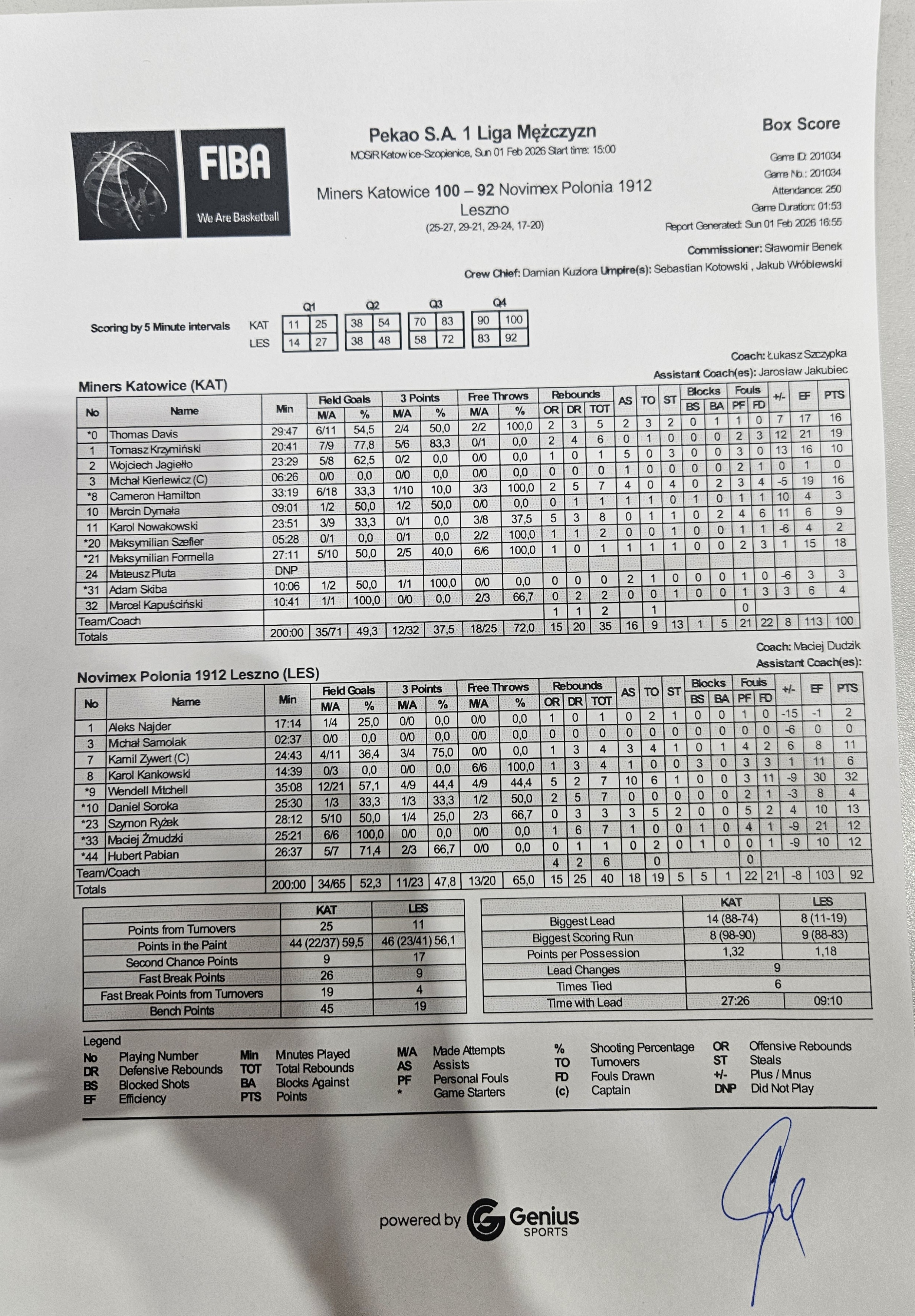 | 09:59:00 | 33, M. Żmudzki, wygrany rzut sędziowski | |||