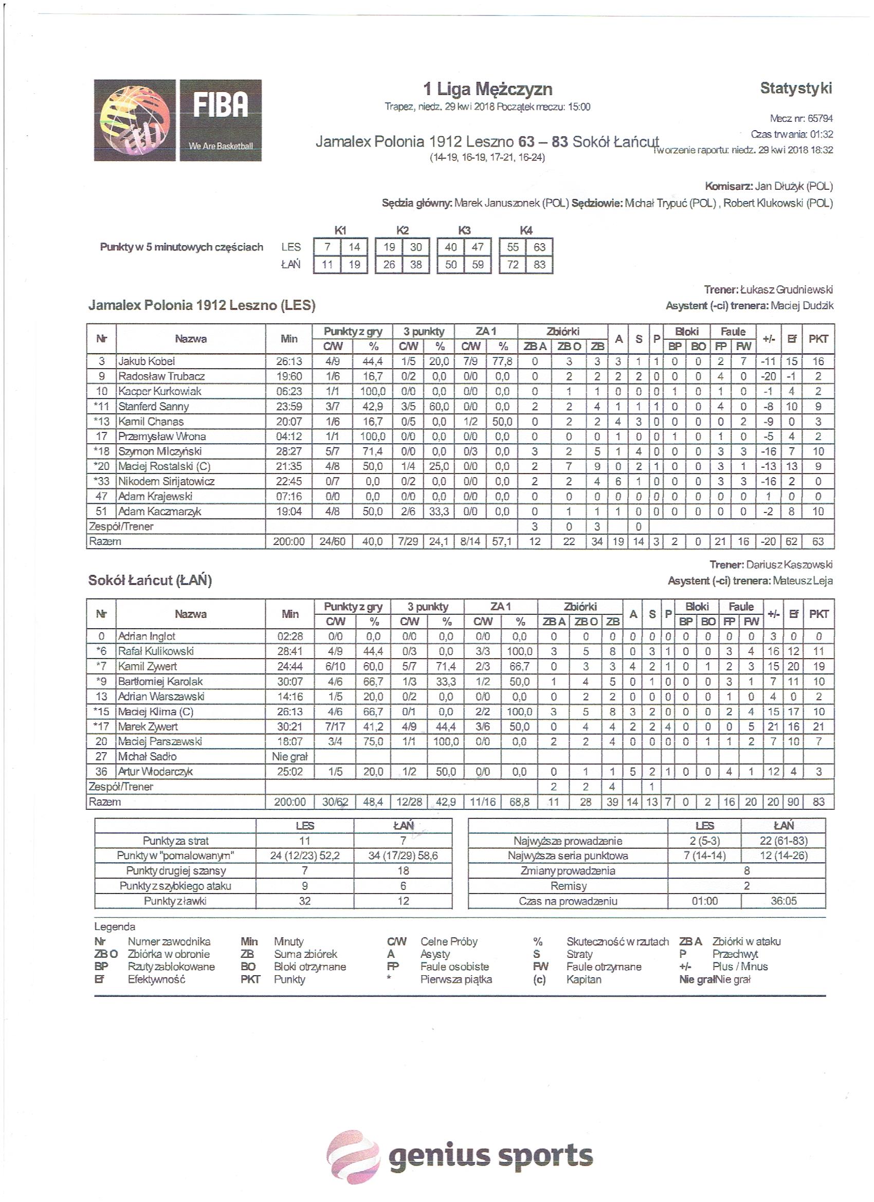 | Jamalex Polonia 1912 Leszno | Kwarta 1 | Sokół Łańcut | ||