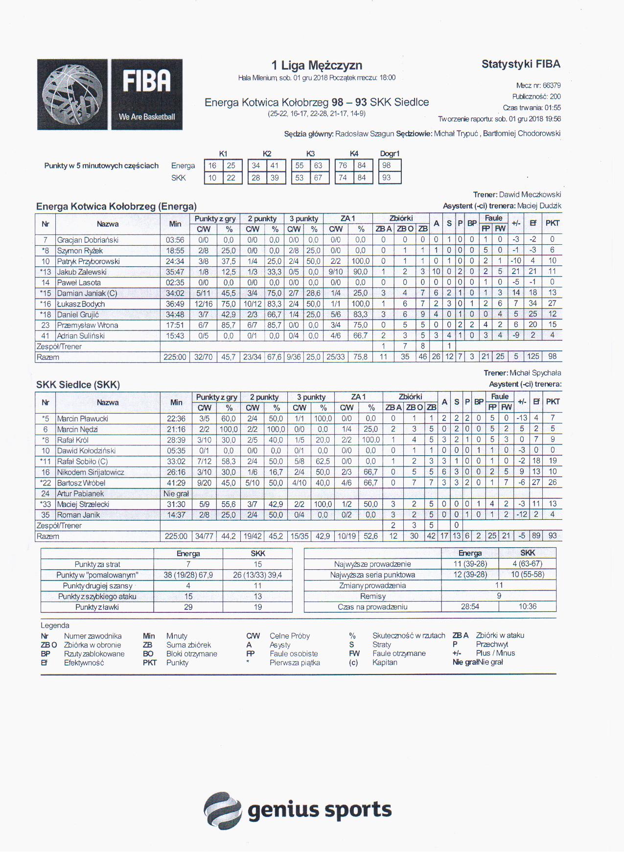 Sędziowie: Radosław Szagun, Michał Trypuć, Bartłomiej Chodorowski | Komisarz: Jarosław Żabko