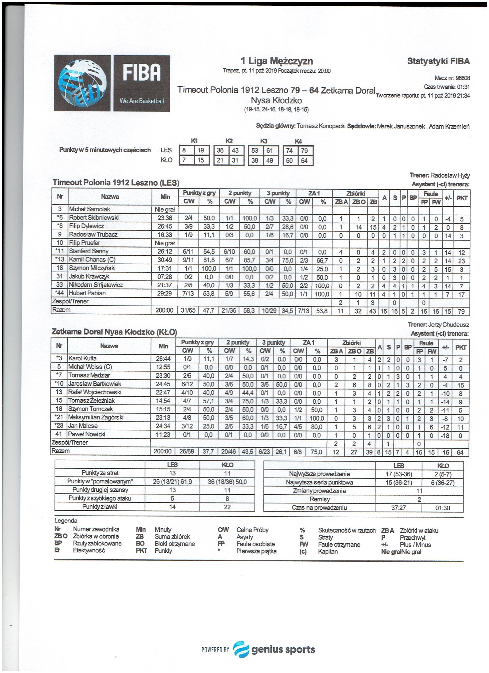 | Timeout Polonia 1912 Leszno | Zetkama Doral Nysa Kłodzko | |